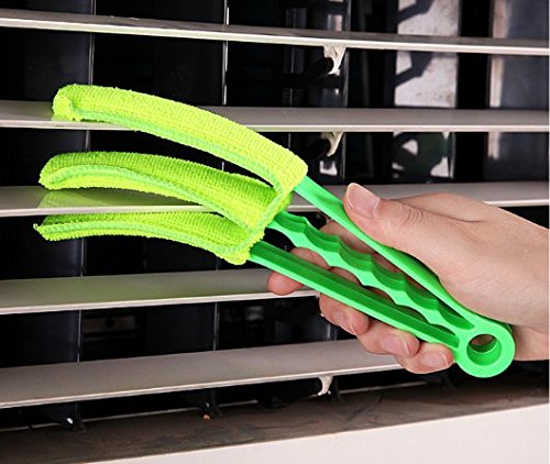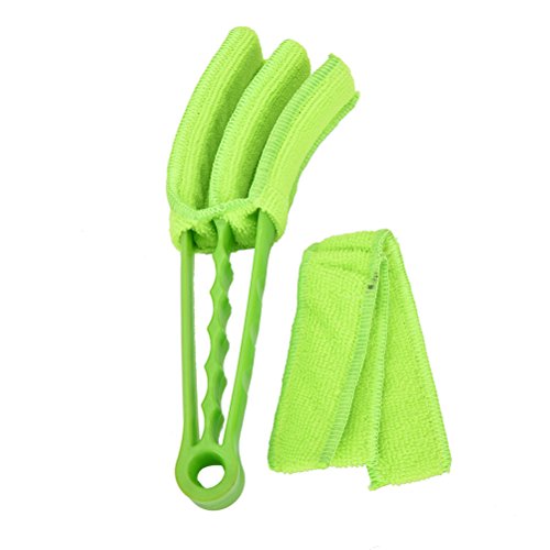 CoscosX Microfiber Blind Cleaner with Brush Shutters Cleaner with Two Sleeves Machine Washable (Green)
