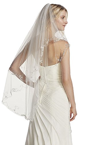 Picture yourself walking down the aisle dressed to the nines in your wedding outfit that took months of planning to complete. To experience a wedding ceremony that you will remember for the rest of your life, you must have a complete outfit right? Well having a veil is not only customary to compliment the wedding dress, but also completes the setting of a well-planned marriage ceremony. This beautiful wedding veil suits all brides well. This veil is easy to attach to the hair through a metal comb so it won't add trouble to any of the preparation plans already set in stone. So why not give yourself an aura of grandeur on your big day? This veil completes the look that you are looking for on the biggest day of your life.