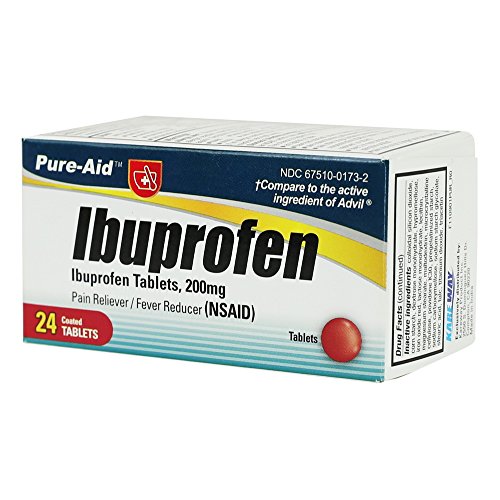 Studio : Kareway Publisher : Kareway Binding : Health and Beauty Product Description PURE-AID Tablet Ibuprofen - 24 tablets ?Pain reliever/Fever Reducer (NSAID) ?Ibuprofen Tablets, 200mg ?Compare to the active ingredient of Advil ?24 coated tablets x 2 pack ?Uses temporarily relieves minor aches and pain due to →Headache →Toothache →Backache →Menstrual cramps →the common cold →Muscular aches →Minor pain of arthritis →Temporarily reduces fever Direction ?Do not take more than directed ?the smallest effective dose should be used ?Do not take longer than 10 days, unless directed b ya doctor (see warnings) ?Adults and children 12 years over →Take 1 tablet every 4 to 6 hours while symptoms persist →If pain or fever does not respond to 1 tablet, 2 tablets may be used →Do not exceed 6 tablets in 24 hours, unless directed by a doctor ?Children 6 to under 12 years of age →Ask a doctor