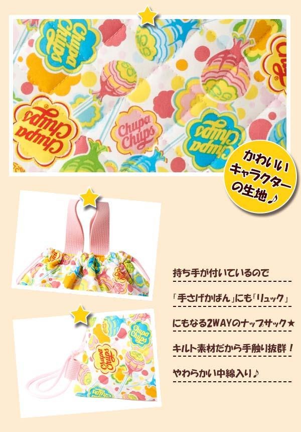 | 総柄プリントの綿素材を使用し、手作り感のあるように仕上げた商品です。持ち手が付いているので「手さげかばん」にも「リュック」にもなる2WAYのナップサックです。遠足や習い事にもピッタリ♪ |