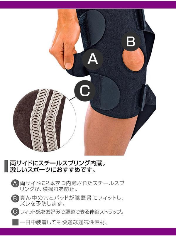 両サイドにスチールスプリング内蔵、強い固定力を体感できます。通気性素材ネオプレーン採用で使用感も快適です。