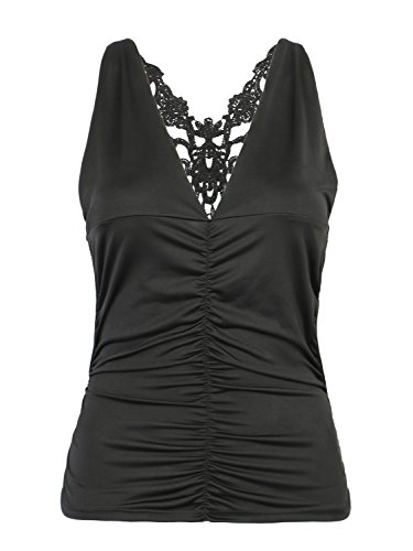 -. Binding : Apparel -. Brand : Choies -. Department : womens -. Feature : Asian ONESIZE=US 0-2 / 82%Polyester+18%Nylon / Elastic and fashionable for girls and ladies / Ultra sexy and hot cami top / We have registered Trademark "CHOiES" -. Model : CHOIES-VEST0720B581C -. ProductGroup : Apparel -. ProductTypeName : SHIRT -. Title : Choies Women's Black/White Deep V Neck Ruched Strappy Lace Back Camisoles Vest