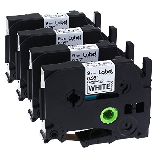 Label KINGDOM 4 Pack Compatible Brother P-touch Label Tapes TZ TZe TZ221 TZe221 9mm Black on White, 0.35 Inch (3/8 Inch) x 8m (26.2ft)