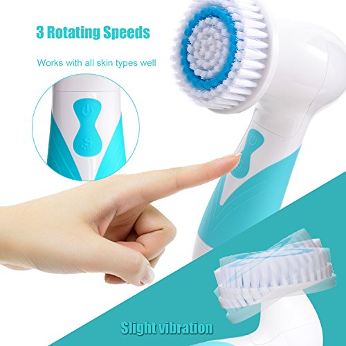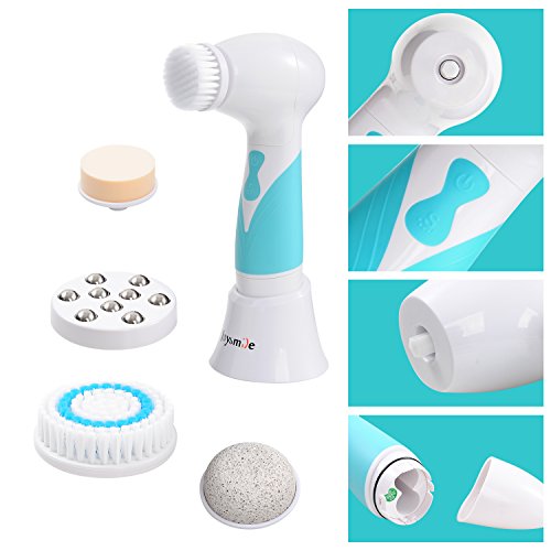 6-IN-1 DESIGN: This facial cleansing brush includes 6 items: a waterproof cordless cleansing unit, a big exfoliating body brush, a microdermabrasion facial brush, a massage attachment, a face moisturizer sponge, a pumice stone and a spin spa holder.