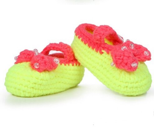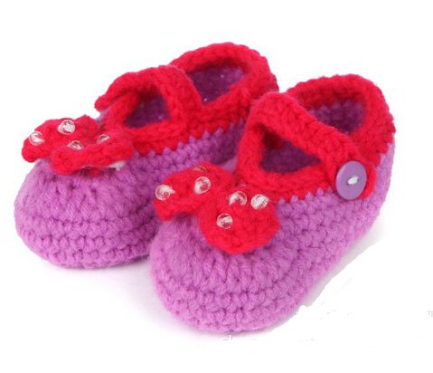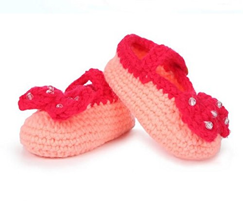 - Title : FuzzyGreen®Cute Bow with Bead Baby Newborn Infant Girl Boy Hand Knitting Crochet Pre Walker Toddler Buckle Shoes Socks Booties(Hot Pink)+Gift