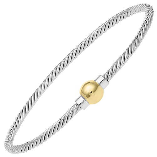 Named for Ocean Side where the style originated, Ocean Side Jewelry captures all the beauty of today's fashion. As part of the most popular styles of the Ocean Side Jewelry line this twisted bangle bracelet features a 14k Gold Ball that covers the sterling silver screw mechanism on a twisted sterling silver bangle. This bangle bracelet is specially shaped for comfort. Each of our jewelry items come in an adorable gift box for safe storage or to surprise that very special person in your life. We produce the high quality items and bring them to you at the best possible prices. We bring you the best quality and value on Amazon and will not be beat. Please contact us with any questions or special orders.Feature