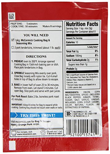 McCormick Bag 'n Season Herb Roasted Pork Tenderloin Cooking Bag & Seasoning Mix, 0.92 oz (Case of 6)