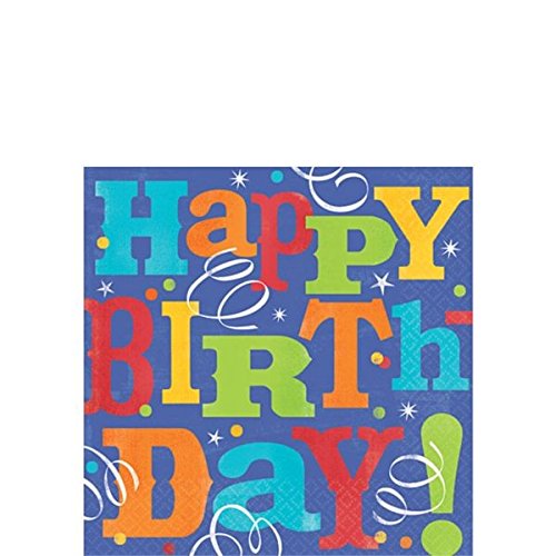 Colorful Birthday Fever Beverage Napkins , Pack of 16, Multi , 5" x 5" Tissue