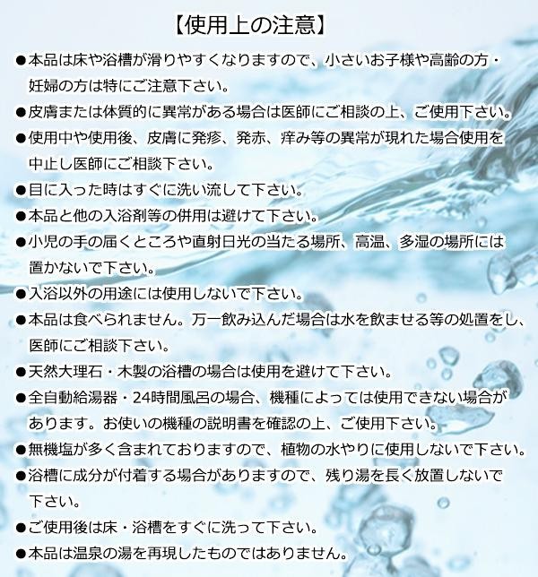| 炭酸成分を含んだ入浴剤です。有効成分が温浴効果を高め、血行を促進します。 |
