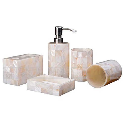 5 Piece Bathroom Accessories Set, Features Soap Dispenser, Toothbrush Holder, Tumbler, Soap Dish - Natural Mosaic Shell