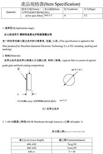 Product DescriptionPackage Included: 1* 2PCS 6.5mm Optical AR-IR CUT filter0