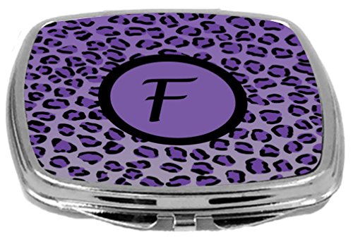 Rikki Knight Compact Mirror, Letter f Initial Purple Leopard Print