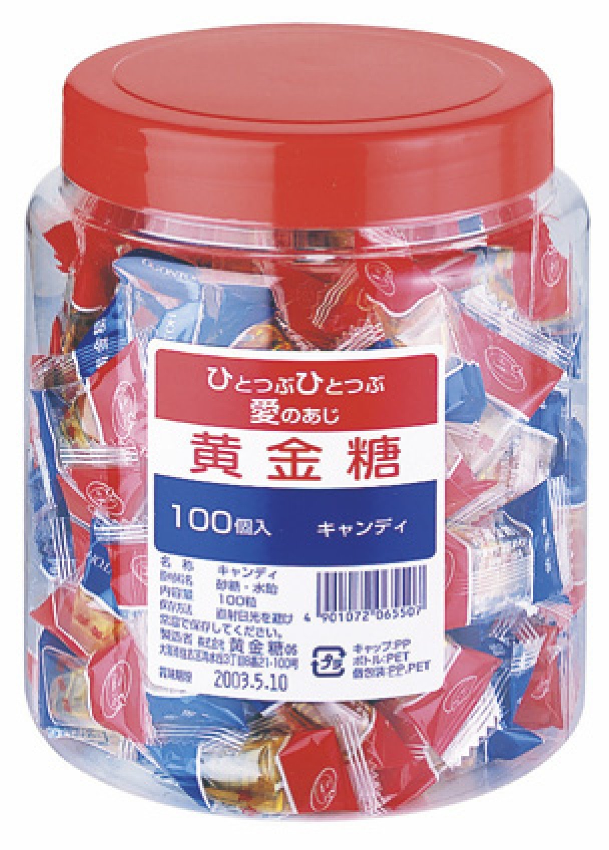 It is a product with a container of beautiful candy with gold color and transparent feeling using sugar · starch syrup.