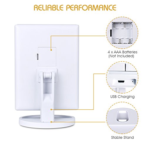- [DOUBLE POWER SUPPLY AND IDEAL GIFT] MOSPRO lighted makeup mirror is operated by 4 AAA batteries (not included) or USB cable. The mirror itself cannot store power. It's an ideal makeup gift for mother, sister, wife, girlfriend, makeup artist, etc. on Valentine's Day, Mother's Day, anniversaries or other special occasions.
