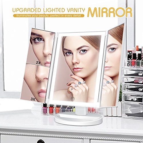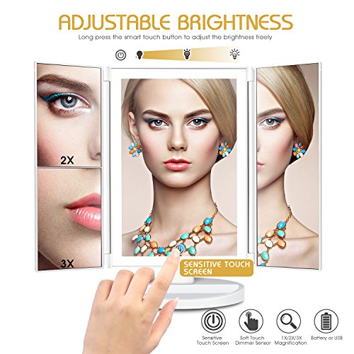 Makeup Mirror Vanity Mirror with Lights - Clarity LED Lighted Trifold Mirror with Touch Screen, 1x/2x/3x Magnification, Dual Power Supply and 180°Adjustable...
