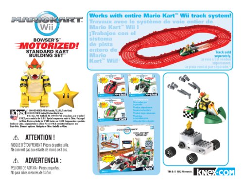 - Feature : Bring the world of Mario Kart Wii to life with super fast battery-powered motorized action! / Build Bowser's Standard Kart, complete with a real working battery-powered motor (requires 2 AAA batteries, not included) / Buildable Bowser figure, plus a bonus collectible Invincibility Star item, just like in the game / Includes 26 colorful durable plastic K'NEX pieces and step-by-step instructions / Recommended for builders ages 6 and up