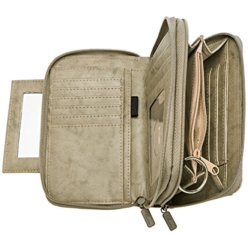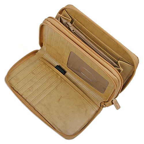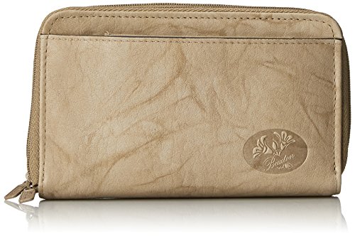 Studio : Buxton Publisher : Buxton Binding : Apparel Product Description This Women's Heiress Genuine Leather Purse Wallet by Buxton is an excellent choice for organizing and storing your valuable essentials. This top grain cowhide leather wallet was designed to minimize space while storing as much as possible. Exterior features 1 zippered compartment with an ID window pocket and 1 main compartment secured by fold over tab with snap closure. Main compartment opens to 4 card slots, an accordion card case, and removable photo inserts. Zippered pocket opens to a grosseted coin purse with an attached key ring. Wallet measures 4.75" x 3.75" x 1.5". 0