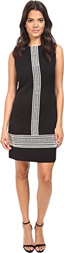 Product DescriptionCrepe shift with lace applique front center trim London Times dress0