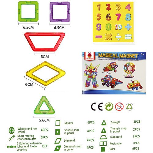 -. Feature : • engaging, innovative play - young children of all ages can create and build cars, houses, dogs and tons of fun, imaginative creations at home or school. / • early learning support - building blocks help kids develop social and motor skills as well as reinforcing counting, math, sensory, and reasoning ability. / • fun, unique shapes - each 46-piece set comes complete with triangles, squares, circle wheels, and more; all to give boys and girls the ability to expand their play. / • school age & up - ideal for children ages 3+, our colorful children's building block sets are made of nontoxic plastic that's safe for little hands. / • easy to build, easy to love - smartoys magnetic blocks stick together easily and more effectively thanks to neodymium rare-earth magnets inside.
