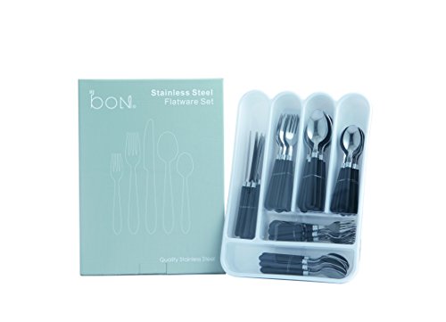 Bon Halter 48-Piece Stainless Steel Flatware Set - Black/Red