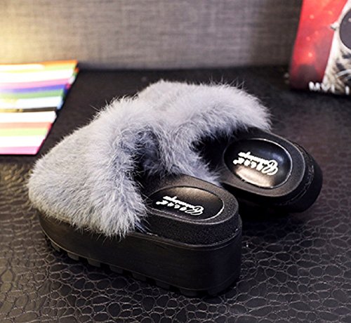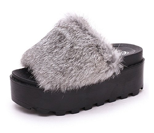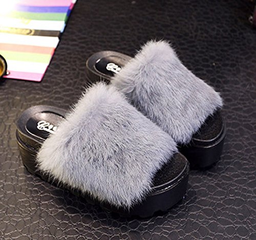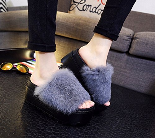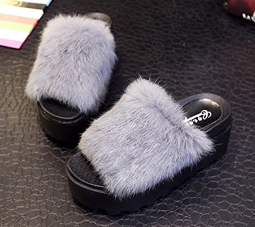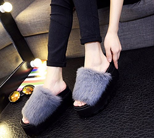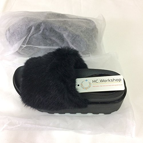 -. Title : (HC.Workshop)ファー サンダル レディース 厚底 かわいい 人気 軽い 歩きやすい ヒール 黒 グレー ネイビー