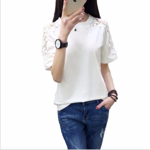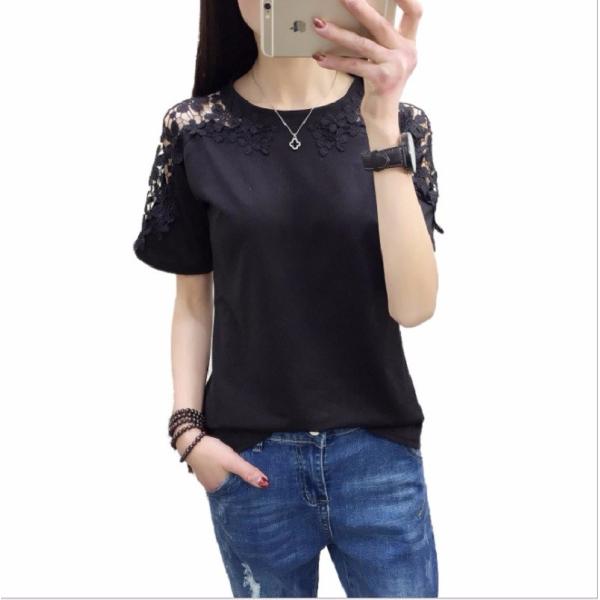 ・商品説明肩まわりに同色のレースを付けた、少しおとななレースブラウスです。大人らしくもあり、フェミニンな女性らしさを演出してくれるブラウス。ボリュームのあるフレアスカートなどにインしてきれいめなスタイルにもおすすめ。夏用のお出掛け用やお呼ばれ用ブラウスとして一枚あるととても便利なマストブラウスです。 ・サイズM着丈・58cm胸囲・86cm肩幅・36cm腰囲・82cmL着丈・59cm胸囲・90cm肩幅・37cm腰囲・86cm・カラーブラックホワイト半袖シャツ シャツブラウス ゆるシャツ ビッグカットソー レディース キーネック ドルマンスリーブ 花柄レース レース切り替え シースルー 透かし ビッグサイズ 体型カバー 2017春新作