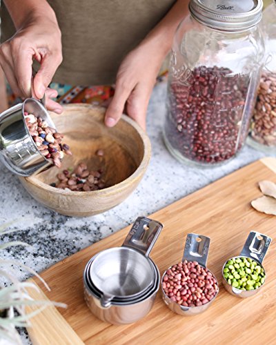 ★ SIMPLE TO USE - Thoughtful features of these stainless measuring cups include a flat base design for stability and one piece thick, & sturdy handles that won’t bend or break off like welded handles. Easy to read engraved markings will last a lifetime and will never rub off or fade. Perfect for measuring rice and other ingredients.