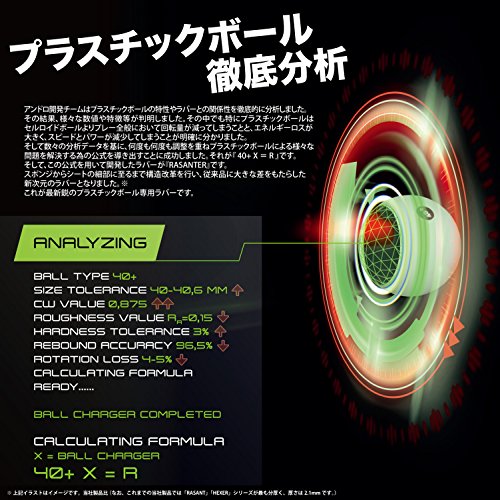 높은 콘트롤 성능과 기분이 상쾌한 타감을 가져오는 슈퍼 소프트 스펀지를 채용.스핀량과 가벼움의 면에서 특히 뛰어나고, 뻗음(늘어남,펴짐)가 있는 타구를 다채롭게 몰려 나간다.세상을 경악 시키는 힘을 당신의수에. ●40+플라스틱 볼 대응:플라스틱제40mm볼 사용 시도,높은 성능을 발휘. 【스피드:112,스핀:117,콘트롤:97,스펀지 경도:37도】