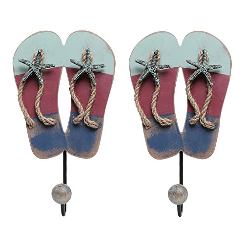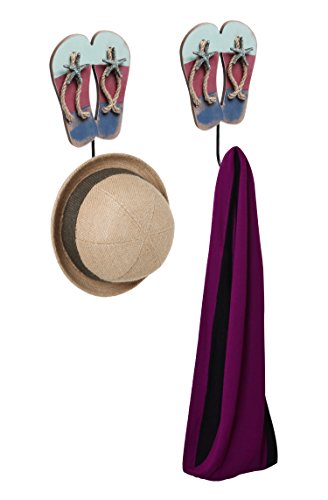 Tropical Beach Flip Flop Sandal Entryway Wall Hanging Ball Capped Coat / Towel Hooks, Set of 2