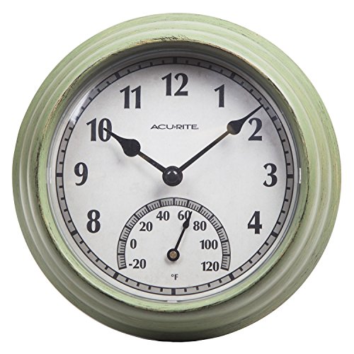 AcuRite 02470 Rustic Green Outdoor Clock with Thermometer, 8.5"