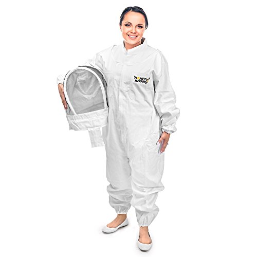 Honey Keeper Professional Cotton Full Body Beekeeping Suit with Self Supporting Veil Hood - Large
