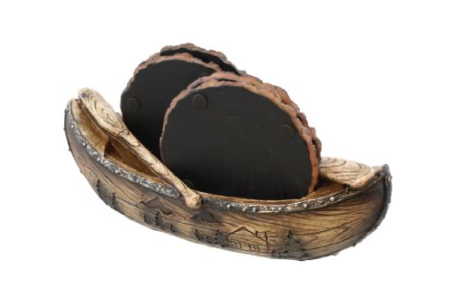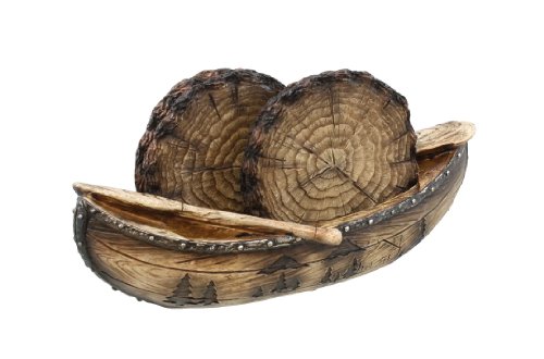 RUSTIC CANOE / LOG COASTER SET 4 COASTERS CABIN FISHING TROUT BASS WALLEYE DECOR