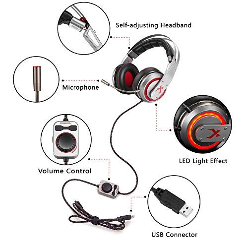FEATURES: 6.56 foot heavy duty and tangle free cable with in-line controls (volume, mic, LED light, vibration control) connects to your computer via USB.No set up or installation is necessary; the headset is plug and play and ready for instant use.