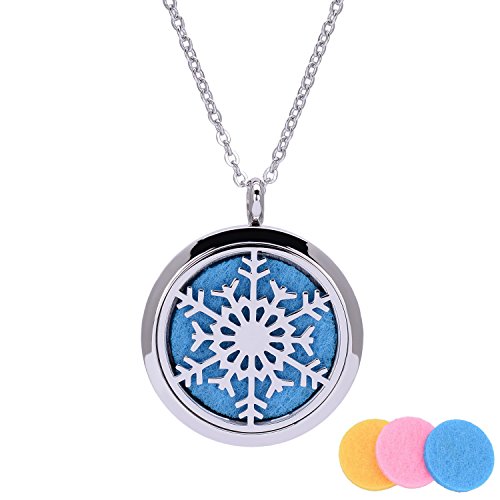 Aromatherapy Essential Oil Diffuser Necklace Christmas Snowflake Stainless Steel Perfume Locket Necklace1.Enjoy the scent of your favorite essential oil without worry about the oil touching your skin;