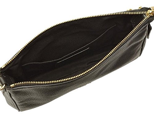 -. Feature : Pebble Leather / Inside zip, cell phone and multifunction pockets / Zip closure, fabric lining / Gold-toned hardware