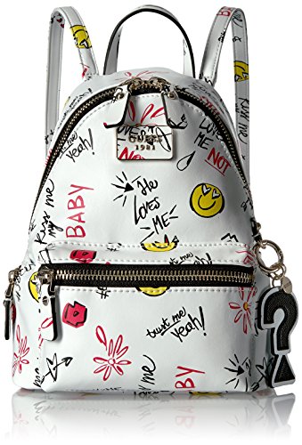 -. Binding : Apparel -. Brand : GUESS -. ClothingSize : 11 H x 9 W x 8 D Inch -. Color : Multi-color -. Department : womens -. Feature : Pockets: 2 interior slip, 1 interior zip, 1 exterior, 1 card slot -. Label : GUESS -. Manufacturer : GUESS -. Model : SF663331 -. PackageQuantity : 1 -. ProductGroup : Apparel -. ProductTypeName : HANDBAG -. Publisher : GUESS -. Size : 11 H x 9 W x 8 D Inch -. Studio : GUESS -. Title : GUESS Cool School Small Leeza Backpack-White Multi