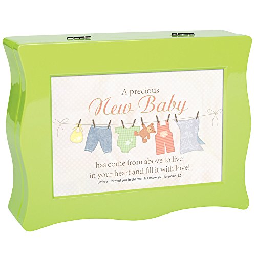 Precious New Baby From Above Green Wavy Keepsake Jewelry Box
