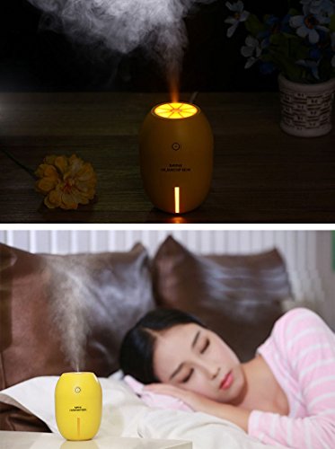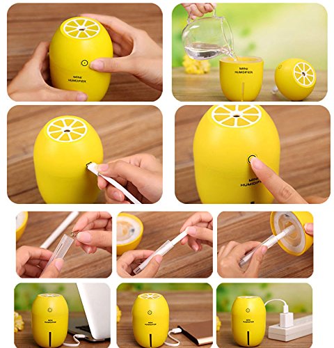 Homanda USB Humidifier Portable Mini Lemon Night Light 180ML Cool Mist Car Air Purifier Steam Diffuser (Lemon Style-Yellow)