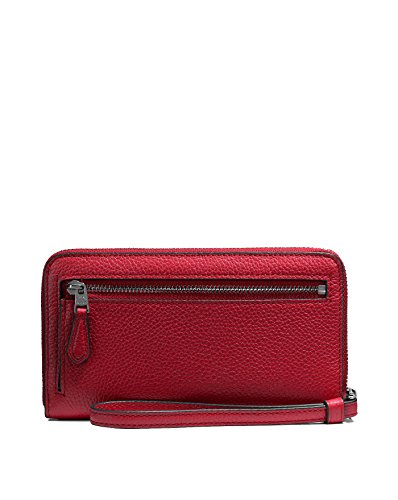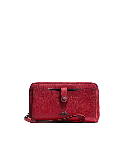 Binding : Apparel Product Description Please Note: COACH™ items cannot be shipped to military addresses (APO or FPO) and addresses in Hawaii, the Virgin Islands, Guam or any other locations outside of the continental US. This bifold piece is designed to hold your phone, cash and cards-all in one polished pebble leather design. An attached wrist strap means your essentials are always at hand. Polished pebble leather. Twelve credit card slots. Full-length bill compartments. ID window. Zip around closure. Outside snap and zip pockets. Wrist strap attached. 6 1/2" (L) x 3 3/4" (H) x 3/4" (W). Imported. Measurements: Bottom Width: 6 1?2 in Depth: 1 1?2 in Height: 3 3?4 in Handle Length: 11 3?4 in Handle Drop: 5 in Weight: 5.7 oz 0