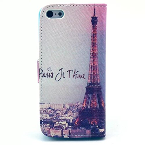 Welity Retro Eiffel Tower PU Leather Wallet Type Magnet Design Flip Case Cover Credit Card Holder Pouch Case for Apple iPhone 5C and one gifts