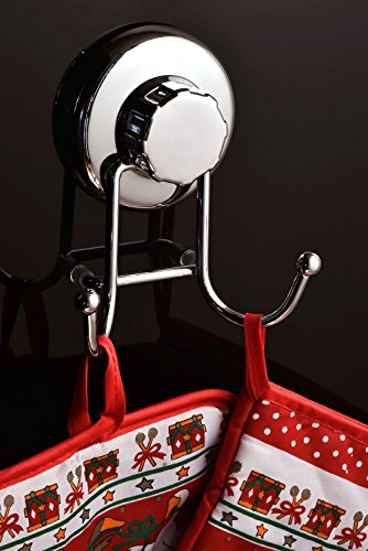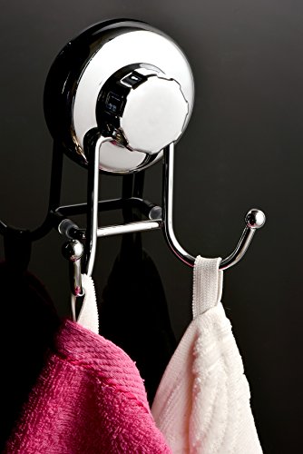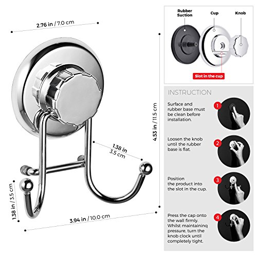 HASKO accessories - Powerful Vacuum Suction Cup Hook Holder for Towel, Robe and Loofah - Stainless Steel Hooks for Bathroom and Kitchen - Can be Mounted Only on Clean Flat Smooth Surface (Chrome)