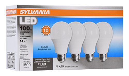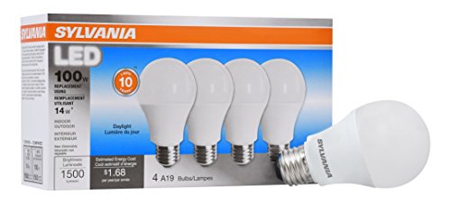 Sylvania Home Lighting 78103 A19 Sylvania, 100W Equivalent, LED Light Bulb Lamp, 4 Pack, Efficient 14W 5000K, Daylight, 4 Piece