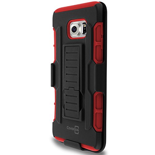 S6 Edge+ Plus Case, CoverON® [Trekker Series] Holster Belt Clip Hybrid Silicone + Hard Stand Cover Phone Case For Samsung Galaxy S6 Edge+ Plus - Red & Black