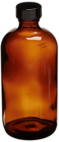 JG Finneran D0161-8 Amber Borosilicate Glass Standard Boston Round Bottle with Black Phenolic Closure, PE Cone Lined, 24-400mm Cap Size, 8oz Capacity (Pack of 12)
