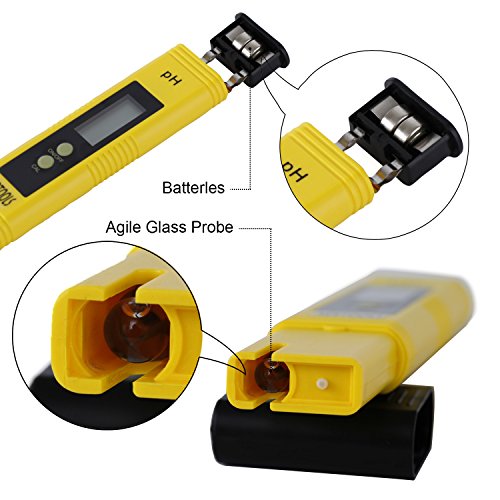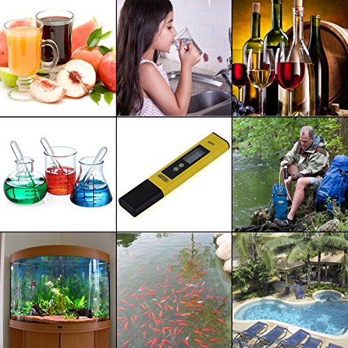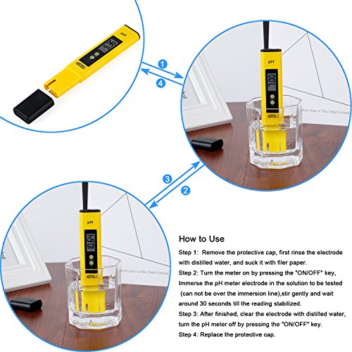 Digital PH Meter for Household Drinking Water, Aquarium, Swimming Pools and Hydroponics, 0.01 pH Resolution,0.00-14.00 Range,Pocket Size(Yellow)