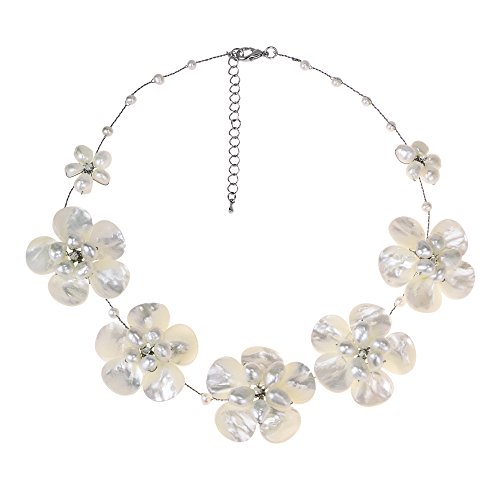 This gorgeous necklace and earring set will compliment your natural beauty and style. The design features a floral medley cultured freshwater pearls, mother of pearl, and fashion crystals. This set is wonderful for any formal occasion, a true statement accessory. PLEASE NOTE: The handcrafted nature of this product will produce minor differences in design, sizing and weight. Variations will occur from piece to piece, measurements may vary slightly.Includes an original AERAVIDA organza jewelry pouch (comes in various colors), also handmade by our Artisans. Perfect for gift giving to someone special or keep for yourself!