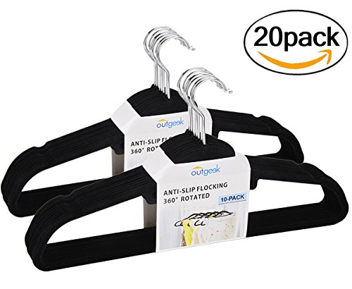 -. Brand : Outgeek -. ClothingSize : Medium -. Color : Black -. Department : unisex-adult -. Feature : Material:Durable yet lightweight ABS (Acrylonitrile Butadiene Styrene) plastic constructed hanger can load more weight than common hangers. / Structure:360 Degree rotation and sturdy chrome-plated metal hook makes it easier to hanging or take down the clothes. / Features:Premium soft touch nylon flocking velvet, anti-slip and scratch features can effectively protect your silk dress or scarf. / Application:Multifunction notched shoulders are convenient for hanging your tank top, underwear and the built-in bar is for tie, scarf or belt, while longer up to 17.73'' bottom bar will storage your large size clothes without deformation. / Slim body hangers will maximize closet space and please do not hang the wet clothes. -. ProductGroup : Home -. ProductTypeName : LUGGAGE -. Size : Medium -. Title : Outgeek Coat Hangers Anti-slip Flocking Velvet Clothing Hangers 20Pack