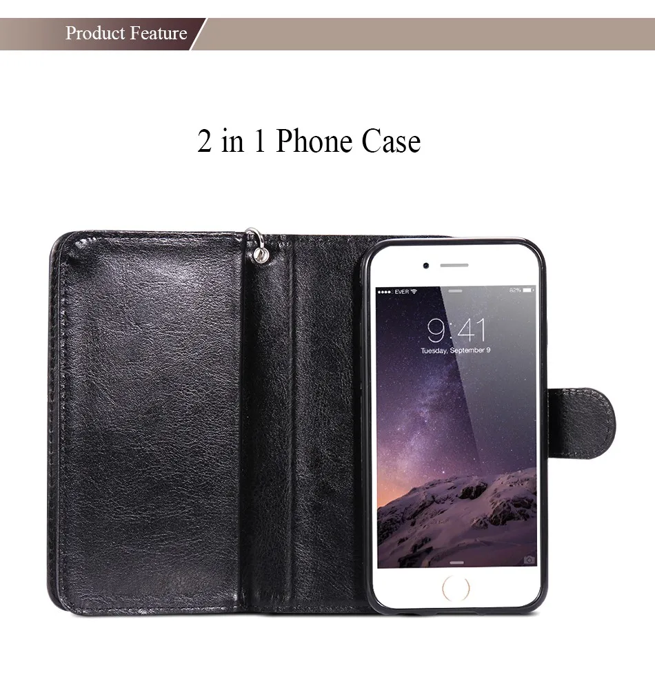 Feature 2 :Luxury PU Leather Flip Wallet 2 in 1 Capa Coque