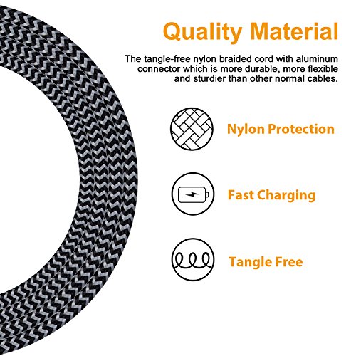 High Quality Material: High quality and environmental friendly nylon braided fiber jacket makes our cable more durable and flexible. Tangle-free Nylon Braided USB Cable with aluminum connector has a long bend lifespan, stronger and flexible Nylon material is stress and stretch resistant and protects against day-to-day wear and tear. 0