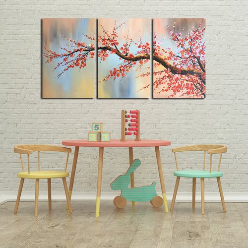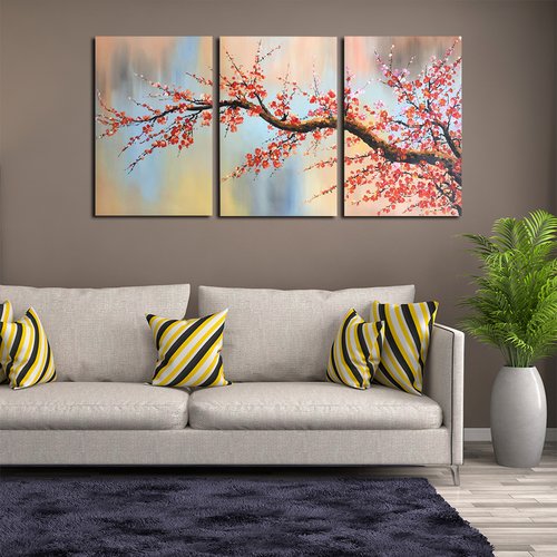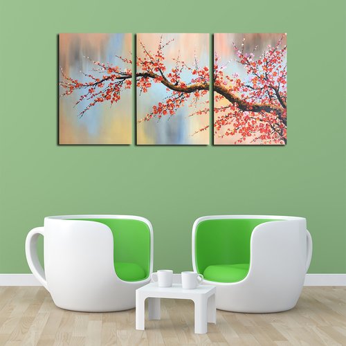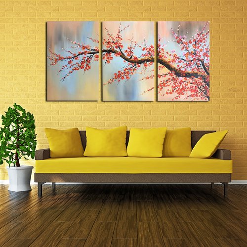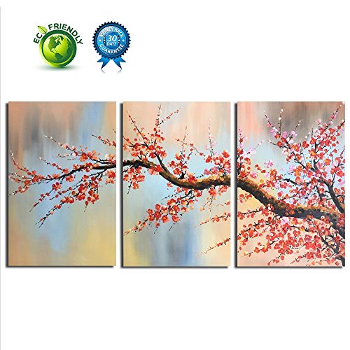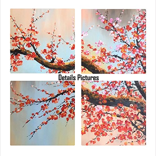 100% Hand Painted Flower Oil Painting on Canvas, Plum Blossom 3 Pieces Still Life Canvas Wall Art Paintings on Stretched Canvas Wall Art for Living Room Wall Decor Home Decoration BYXART
